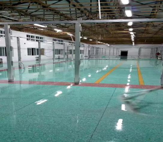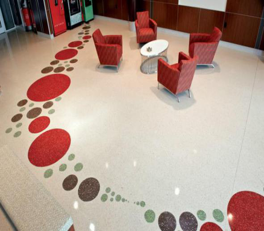 性能特點:具有密度大,硬度高,耐磨,不生塵,不易剝落等物理性能和特點、表面光亮、防塵防滑、耐磨、表面硬度可達到6-8級、可隨意拼接花色、顏色均可自定義配制、不怕重車碾軋、不怕重物拖拉、不起塵、潔凈度高;潔凈度滿足制藥、芯片制造等高潔凈環境的要求,達到GMP要求。無機水磨石不燃、不發火、耐老化、耐污損、耐腐蝕、無異味無任何污染,整體美觀亮麗。