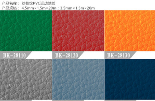 PVC運動地板:是采用聚氯乙烯材料專門為運動場地開發的一種運動地板,是以聚氯乙烯及其共聚樹脂為主要原料,加入填料、增塑劑、穩定劑、著色劑等輔料,在片狀連續基材上,經涂敷工藝、經壓延、擠出、擠壓工藝生產而成。一般是由多層結構疊壓而成,一般有耐磨層(含UV處理)、玻璃纖維層、彈性發泡層、基層等。PVC運動地板應用非常廣泛,是奧運會等各項國際性比賽都指定PVC彈性運動地板。