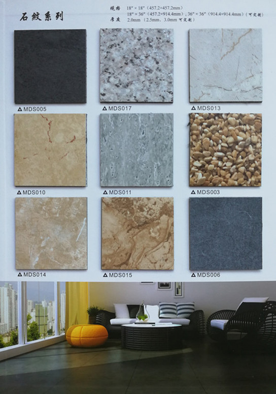 石塑地板:又稱之為石塑地磚,正規(guī)的名稱應(yīng)該是“PVC片材地板”,是一種高品質(zhì)、高科技研究開發(fā)出來(lái)的新型地面裝飾材料,采用天然的大理石粉構(gòu)成高密度、高纖維網(wǎng)狀結(jié)構(gòu)的堅(jiān)實(shí)基層,表面覆以超強(qiáng)耐磨的高分子PVC耐磨層,經(jīng)上百道工序加工而成。